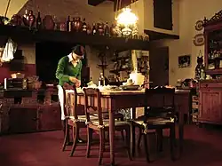 Les plats typiques du restaurant sont les bistecche di cinghiale (bifteck de sanglier) et le cinghiale in dolceforte (sanglier avec du chocolat noir) ainsi que la charcuterie associée ; le faisan (qui est maintenant plus élevé que chassé) généralement rôti ; divers ragoûts de lièvre, daim et chevreuil. Les pigeons et les colombes sont consommés de plus en plus rarement, tout comme les porcs-épics.