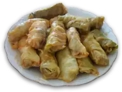 La célèbre feuille de vigne farcie au riz (ou au boulghour) avec ou sans viande est aussi appelée yaprak sarması en Turquie. Elle peut se manger froide mais plus souvent chaude comme plat principal.