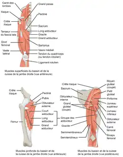 Les muscles de la cuisse sont répartis en trois loges situées au sein du fascia lata : la loge antérieure, la loge médiale et la loge postérieure.
