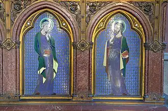 - Maredsous (Belgique), église abbatiale : autel de Saint Benoît (aujourd'hui disparu). Conçu par Lucien Francois[26].