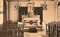 - Linselles (Nord), église de la Nativité de Notre-Dame : maître-autel (vers 1930). La courtine et les luminaires sont aujourd'hui disparus.