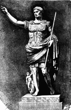 Il se dit fils d'Apollon. Il utilise l'iconographie et les écrivains de son temps Virgile et Horace à des fins idéologiques. Les lettres et les arts ainsi sont mis au service de la propagande augustéenne[1]. Il associe aussi toute la communauté au culte de ses ancêtres devenant ainsi le père de tous, d'où son titre de père de la patrie. Auguste refuse d'être divinisé de son vivant. Il laisse cependant se construire des autels et des temples qui lui sont consacrés surtout dans l'Orient habitué à considérer ses souverains comme des dieux vivants, à condition que son nom soit associé à celui de Rome divinisé. À Rome, en Italie et dans les camps militaires, on rend hommage à son Genius et à son numen. Le culte impérial se pratique ici dans des formes proprement romaines. Le mouvement se poursuit après sa mort. Tibère (14-37), son successeur, développe le culte d'Auguste qui a été divinisé officiellement en recevant l'apothéose. Il crée une nouvelle classe de prêtres, les sodales augustales pour rendre les honneurs divins à Auguste et à la famille des Iulii. Ce corps était composé de vingt-et-un membres choisis dans les principales familles de Rome[2]. Le sénat joue un rôle important dans la divinisation des empereurs. C'est en effet lui qui décide si le défunt est bon et digne de l’apothéose.