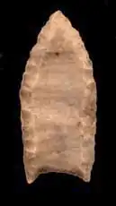 « Des campements de chasse d'hommes de Folsom avaient été découverts dans tous les états du centre et du sud-ouest, leur occupation remontant en général entre douze mille et neuf mille ans. À cette époque, tout à fait à la fin de la dernière glaciation, ils semblaient avoir eu cet immense territoire pour eux seuls. Ils avaient suivi les troupeaux de bisons, vivant seuls dans de petits campements où ils taillaient leurs pointes de sagaies, leurs couteaux, leurs grattoirs à peaux et autres outils fabriqués avec des silex. Ces pointes de sagaies étaient leur signe distinctif. Elles avaient la forme d'une feuille, étaient petites, remarquablement fines, parcourues d'une rainure longitudinale comme les baïonnettes; technique particulière qui consistait à séparer de petites écailles par de multiples points d'impact[3]. »