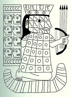 La culture Tiwanaku se développa sur les hauts plateaux entre 550 et 900[4] : son influence sur les Huari est notable dans le domaine religieux et les rites funéraires. Sur certaines céramiques, apparaît la représentation de divinités aux traits anthropomorphes et zoomorphes, similaires à ceux de Viracocha (« dieu des bâtons ») de la culture Tiwanaku. La présence de la culture Tiwanaku ou Tiahuanaco à Ayacucho est aussi attestée par la représentation d’une divinité gravée sur la « Porte du Soleil » située au sommet de la pyramide d'Akapana dans l'enclos de Kalasasaya (en Bolivie). Cette image, tout comme les « anges » qui l’accompagnent, est dessinée sur de grandes urnes d’Ayacucho, que l’on connait sous le nom de style conchopata, car ce style est issu de cette localité.