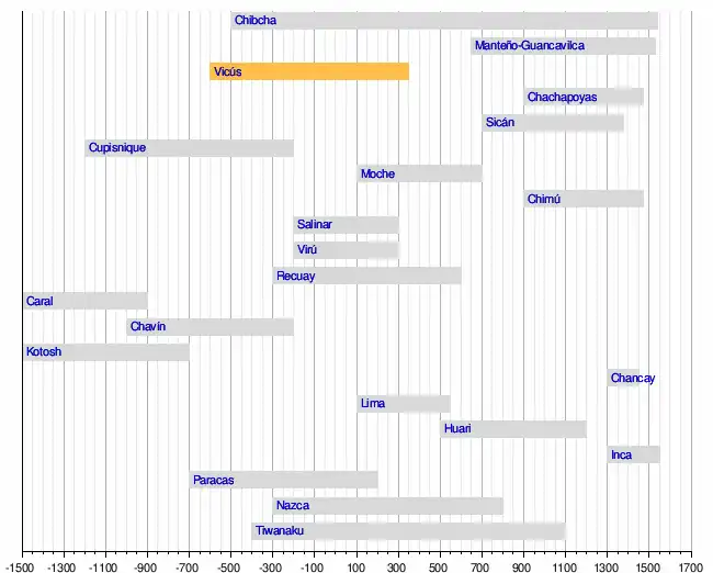 La culture Vicús (du nom d’une petite localité du nord du Pérou, située à environ 40 kilomètres à l’est de la ville de Piura), datée du Ve siècle av. J.-C. au VIe siècle apr. J.-C. approximativement, appartient à l’ensemble des cultures dites «classiques» du Pérou préhispanique. Elle occupait une aire encore archéologiquement mal définie, dont le centre paraît avoir été la haute vallée de Piura mais qui s’étendait sans doute, vers le nord, jusqu’au sud de l’Équateur actuel et, vers le sud, jusqu’à la vallée de Lambayeque.