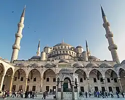 Cour intérieure de la mosquée bleue, à Istanbul.