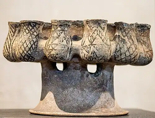 Dans les mêmes tombes, on a trouvé des vases en marbre à col tronconique, à panse globulaire, et à pied tronconique, les kandèla. La panse, large, est dotée d'oreillettes verticales percées. Ces vases constituent un travail considérable, et sont donc des objets de prix placés dans les tombes. Leur fonction reste incertaine.