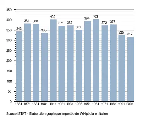 - ↑ (it) Popolazione residente e bilancio demografico sur le site de l'ISTAT.