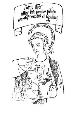 - L'ancienne église Saint-Jean a été détruite en 1870, et seule une fresque du XVe siècle put être copiée. Elle montre Saint Jean l’évangéliste et l'inscription au-dessus de sa tête : « Sanctus Joannes ; passus sub Pontio Pilato, crucifixus mortuu et sepultus est »[32].