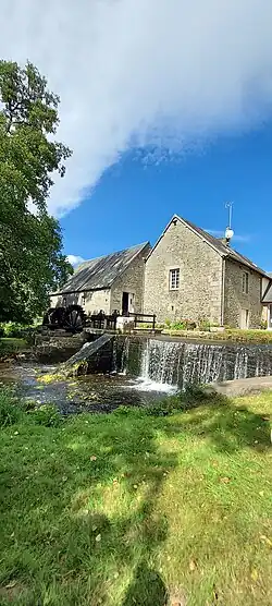 Construit en 1854 sur un bief de la Sée, le moulin est encore doté de trois roues à aubes de plus de quatre mètres de diamètre, des mécanismes et des meules destinées à moudre blé, orge et sarrasin[31].
