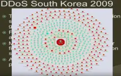 - En 2009 des attaques en déni de service ont eu lieu contre des sites gouvernementaux, financiers, et de médias de Corée du Sud et des États-Unis[14].