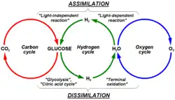 Les autotrophes, tels que les arbres et autres plantes vertes, utilisent la photosynthèse pour convertir le dioxyde de carbone en sucres lors de la production primaire, et libérent ainsi de l'oxygène. Ce flux est particulièrement important dans les écosystèmes à forte croissance, par exemple dans les jeunes forêts. Le carbone étant consommé pendant la croissance autotrophe, ce flux est plus important au printemps ou en été et durant la journée, plutôt qu'en hiver ou la nuit lorsque la photosynthèse est ralentie voire stoppée.