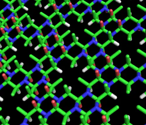 - ↑ D'après M Huggins, « The Structure of Proteins », Journal of the American Chemical Society, vol. 61, no 3, , p. 755 (DOI 10.1021/ja01872a512)