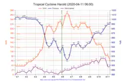 - ↑ (en) « Tropical Cyclone Harold Technical Bulletin April 2, 2020 18:00z » [archive du ], Bureau of Meteorology, (consulté le ).