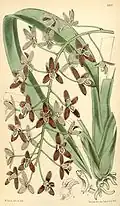 C'est une grande orchidée épiphyte avec pseudobulbe gris-vert, étroit, ellipsoïde entouré de plusieurs gaines à la base avec 2 à 6 feuilles, linéaires, dressées, rigides, et rainurées. Les fleurs sont portées sur une et souvent plusieurs tiges arquées de 45 cm de long. Elles sont nombreuses, petites, cireuses, parfumées, de 4 cm de diamètre. La floraison a lieu au printemps.