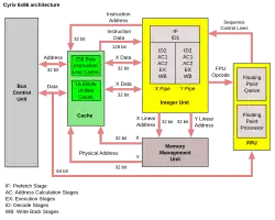 En ce qui concerne les caches internes, il dispose d'un cache primaire de 16 ko et d'un cache de ligne d'instruction entièrement associatif de 256 octets, qui fonctionne comme le cache d'instruction primaire[37].