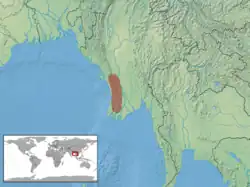 Cette espèce se rencontre dans l'État d'Arakan et la région d'Ayeyarwady en Birmanie et dans la division Chittagong au Bangladesh[1].