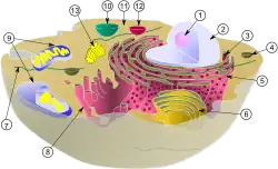 Le cytoplasme, lui, est l'ensemble constitué du cytosol et des organites. Il occupe l'espace situé entre le noyau et la membrane plasmique[2].