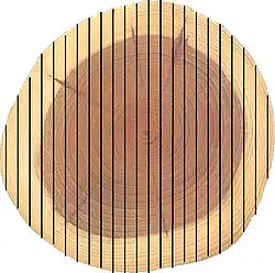 - Lorsque le trait de scie, parallèle à l'axe du tronc, est tangent à celui-ci, on parle de « débit sur dosse ». On parle alors d'une planche à l'aspect flammé.