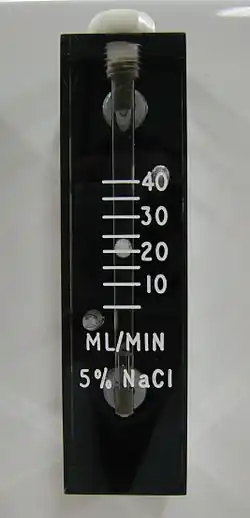- un débitmètre à flotteur, également un organe déprimogène, affiche la position d'équilibre d'un flotteur soumis à un courant dans un tube conique vertical ;
