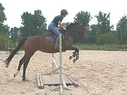 En fin de débourrage, le cheval de selle devrait, dans l'idéal, être non-craintif vis à vis de son environnement extérieur, immobile au montoir, capable de sauter de petits obstacles et de se tenir en équilibre sous la selle et le cavalier[5].