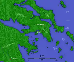 Décélie sert de base aux Spartiates pour lancer des raids sur l'Attique dans toute la dernière partie de la guerre du Péloponnèse de 412 à 404. Comme Thucydide le fait dire à Alcibiade :