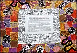 La déclaration d’Uluru est une demande formelle qui a été faite aux Australiens le 26 mai 2017 par les 270 délégués réunis à Uluru en Australie centrale sous la houlette du Conseil constitutionnel national des aborigènes et des insulaires du détroit de Torrès (Referendum Council). Cette déclaration réclame que deux éléments soient inscrits dans la constitution australienne : l’instauration d’une commission permanente « Voix des Peuples premiers » (a First Nations’ Voice) et d’une « Commission Makarrata » pour superviser un processus visant d'une part à établir des accords entre les gouvernements et les peuples premiers et d'autre part à rechercher la vérité sur l’histoire. Toujours d’actualité car non suivie d'effets au niveau gouvernemental, cette déclaration adressée à tous les Australiens fait toujours l’objet de débats en Australie en 2021[1]. La déclaration d'Uluru a reçu le prix Sydney de la paix 2021[2],[3].