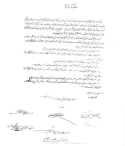 Le , dans le palais de l'ancien gouverneur de l'empereur de Russie dans le Caucase à Tbilissi, dans le salon bleu pour le groupe musulman de Sejm de Transcaucasie, membres du Conseil national d'Azerbaïdjan réunis à la réunion présidée par M. Hassan bey Aghayev[pas clair]. M. Hassan bey Aghayev a informé les participants de l’effondrement du Sejm transcaucasien, ainsi que de la situation interne et externe prévalant dans la région[pas clair]. Aghayev a mis la considération de l'Azerbaïdjan libre et indépendant[pas clair]. Après une discussion longue et approfondie, le secrétaire, Moustafa Mahmudov, a lu le nom des électeurs : 24 voix, avec 2 abstentions, ont adopté une déclaration d'indépendance de l'Azerbaïdjan. La déclaration a été signée par Hassan bey Aghayev, Fatali Khan Khoyski, Nassib Youssifbeyli, Jamo bey Hadjinski, Chafi bey Rustambeyli, Nariman bey Narimanbeyov, Javad Malik-Yeganov et Mustafa Mahmudov. Seuls Jafar Ahundov et l'un des dirigeants du parti İttihad, Majid Soultan Ghani Zadeh, n'ont pas voté pour l'adoption de la Déclaration[5].