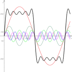 - En mathématique avec des applications en physique, toute fonction périodique peut se décomposer en série de Fourier.