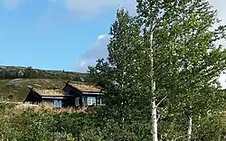 Comme en Finlande, le modèle primitif nommé « eldhus » avec pièce unique articulée autour du foyer sans conduit de fumée[2] rappelle clairement l’isba primitive russe. La parenté avec l’isba vaut également pour sa décoration : en Norvège comme en Russie la sculpture sur bois anime la maison rudimentaire même si, en Norvège, elle concerne moins les fenêtres, les pelatientsi que les planches de rive, les lambrequins chantournés et le sommet du pignon. Moins développés qu’en Russie, on peut encore voir en Norvège en dehors des écomusées des panneaux sculptés aux motifs très proches des ornements celtiques[31] hérités de la longue tradition de la sculpture sur bois norvégienne au service de l’identité nationale pendant les longs siècle d’émancipation politique de ce pays.