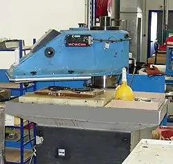 Pour des matériaux plus épais nécessitant des pressions plus fortes, les outils (avec des lames plus hautes, 50 à 100 mm) sont montés sur des presses hydrauliques.