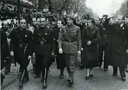 - ↑ C'est en février 1937 que première fois que le décret fut appliqué par les forces de sécurité, contre certaines activités phalangistes