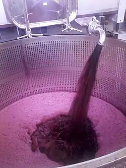 Le marc sorti de la cuve est transféré dans un pressoir, puis le pressurage permet d'obtenir le vin de presse[1]. Le premier jus qui sort du pressoir, doux et peu alcoolisé, est appelé le Paradis[2]. Plus la pression augmente, plus ce vin devient tannique. Il pourra être assemblé, en totalité ou en partie, au vin de goutte[3].