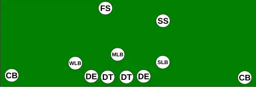 La défense 4-3 est un schéma tactique défensif au football américain. Il est nommé ainsi car il y a 4 linemens défensifs (deux defensive ends et deux defensive tackle nommé nose tackle) et 3 linebackers. Cette défense est l'un des plus utilisées dans la National Football League.