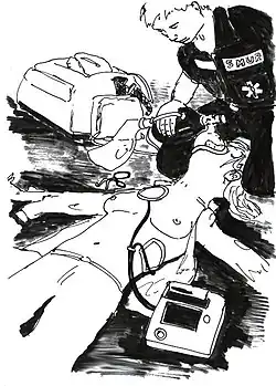 Les chances de survie étant maximales si la défibrillation est précoce, ce geste est délégué à des personnels non-médecins ; ceci a été rendu possible grâce aux progrès de l'informatique, il est en effet possible pour un ordinateur de reconnaître un rythme défibrillable. Ceci a conduit à la création de défibrillateurs semi-automatiques (DSA) et de défibrillateur entièrement automatique (DEA), utilisables par des secouristes et par le grand public.