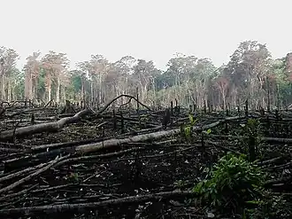 Les deux premiers pays destructeurs de forêts pour 2000-2005 sont[47] : le Brésil (avec 3,1 millions ha/an détruits (0,6 % de déforestation)) et l'Indonésie, avec 1,8 million ha/an détruit (2 % de déforestation). En 2012, l'Indonésie a abattu près de deux fois plus de forêt vierge que le Brésil, avec 840 000 hectares de forêt abattus[48].