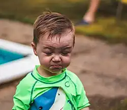 Décrite par Charles Darwin[2] puis Paul Ekman[3], l'expression faciale du dégoût se résume principalement à un froncement du nez en relevant la lèvre supérieur. L'expression faciale est exprimée dès la naissance. Elle semble donc innée. Cette connaissance, souvent citée, repose toutefois sur une seule étude de 1979 de Jacob Steiner (en)[28]. De manière plus générale, des phénomènes de « néophobie alimentaire » sont observés chez les animaux et chez l'enfant[14].