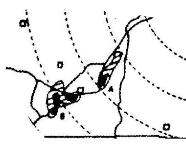 1) Les zones achurées représentent les échos de plus de 19 dBZ et ceux en noir les échos de plus de 47 dBZ.