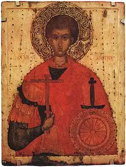 C'est un saint des Églises chrétiennes célébré le 9 avril[1],[2],[3] ou le 26 octobre (usage grec)[4]. À cette occasion, le premier ministre grec a pour tradition de se rendre à Thessalonique, ville du saint patron qui protège la cité, le de chaque année.