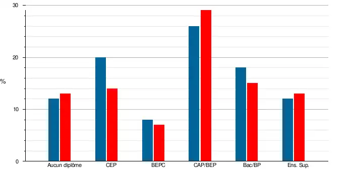 - ↑ « Résultats du dernier recensement de la population - Indicateurs relatifs à la formation - Ain ».