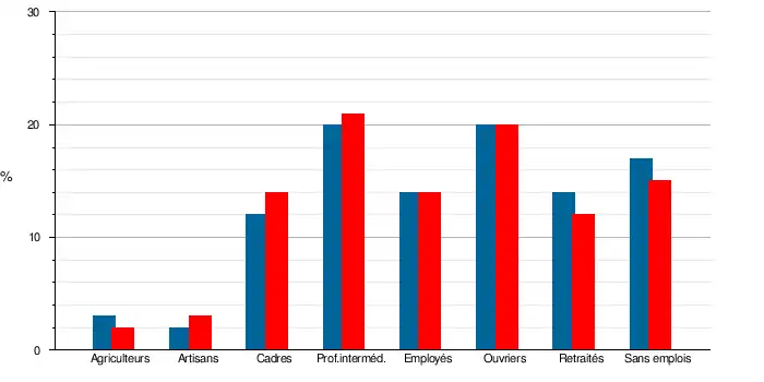 En 2009, les professions intermédiaires représentaient, avec 59 emplois, la catégorie socioprofessionnelle la plus importante de la population active de la commune (21,2 % contre 13,2 au niveau départemental). En 1999, ils étaient 52 et représentaient 19,7 % de la population active.