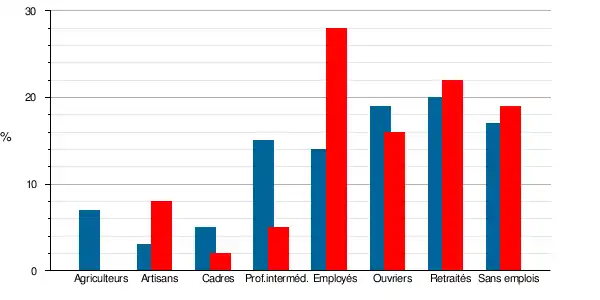 | Artisans, commerçants, chefs d'entreprise | 20 | 7,5 | 8 | 3,4 | 3,7 | 4,2 | 3,3 | 3,5 |