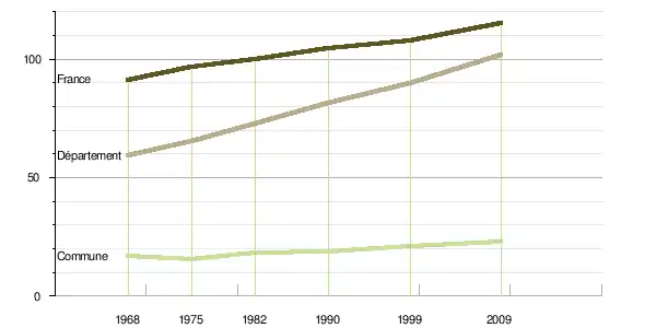 Le taux de mortalité est quant à lui passé de 7,2 ‰ sur la période 1968-1975 à 5,9 ‰ sur la période 1999-2009[5]. Celui du département était sur cette dernière période de 7,6 ‰ et celui de la France de 8,8 ‰[7].