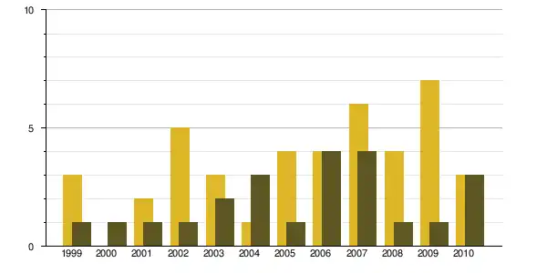 | 1968 à 1975 | 1975 à 1982 | 1982 à 1990 | 1990 à 1999 | 1999 à 2009 | ||