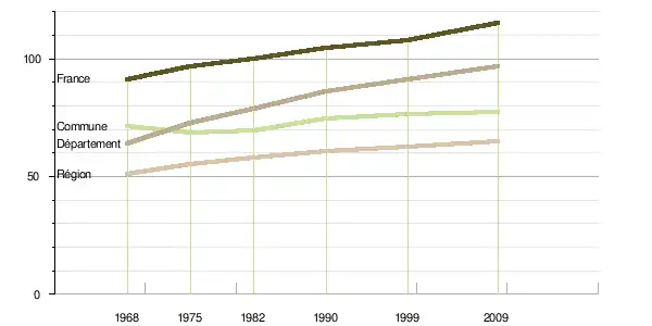 | 1968 | 1975 | 1982 | 1990 | 1999 | 2009 | Évolution annuelle moyenne sur la période 1968-2009 (%) | ||