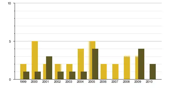 | 1968 à 1975 | 1975 à 1982 | 1982 à 1990 | 1990 à 1999 | 1999 à 2009 | ||