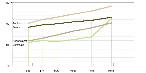 | Densité moyenne (hab/km²) | 55,4 | 59,4 | 57 | 61,5 | 68 | 112,1 | 102,2 | 141,3 | 114,8 |