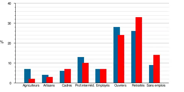 | Ouvriers | 54 | 24,1 | 60 | 27,8 | 15,7 | 17,3 | 13,5 | 14,9 |