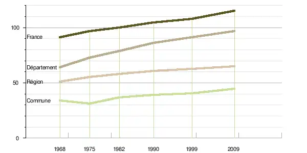| 1968 | 1975 | 1982 | 1990 | 1999 | 2009 | Évolution annuelle moyenne sur la période 1968-2009 (%) | ||