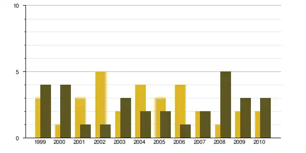 | 1968 à 1975 | 1975 à 1982 | 1982 à 1990 | 1990 à 1999 | 1999 à 2009 | ||
